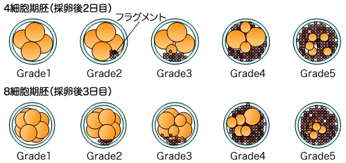 Grade2…細胞の形態が均等でわずかにフラグメンテーションを認める胚