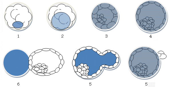 4:拡張胚盤胞(expanded)胚盤胞腔容積がさらに拡張し、透明帯が薄くなりつつある